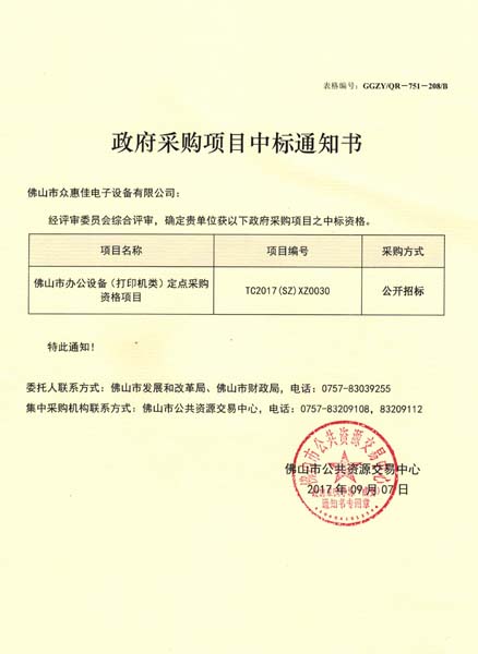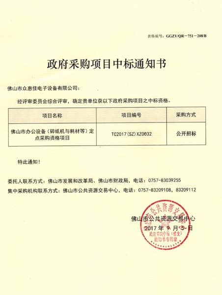 佛山市办公设备(碎纸机与耗材等)定点采购资格项目