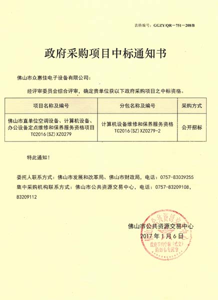 佛山市直单位空调、计算机设备、办公设备定点维修保养服务资格项目--计算机设备维修和保养服务资格