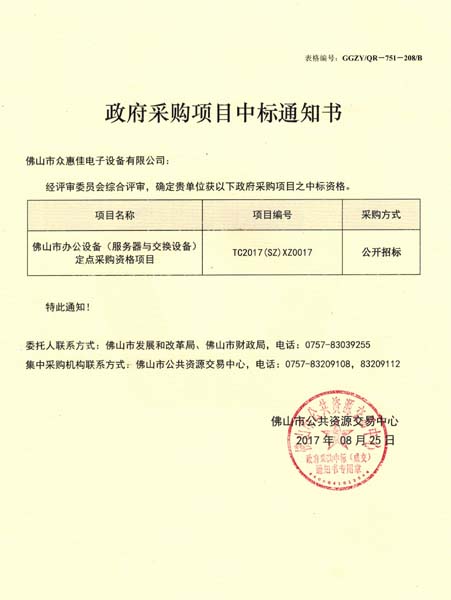 佛山市办公设备(服务器与交换设备机)定点采购资格项目